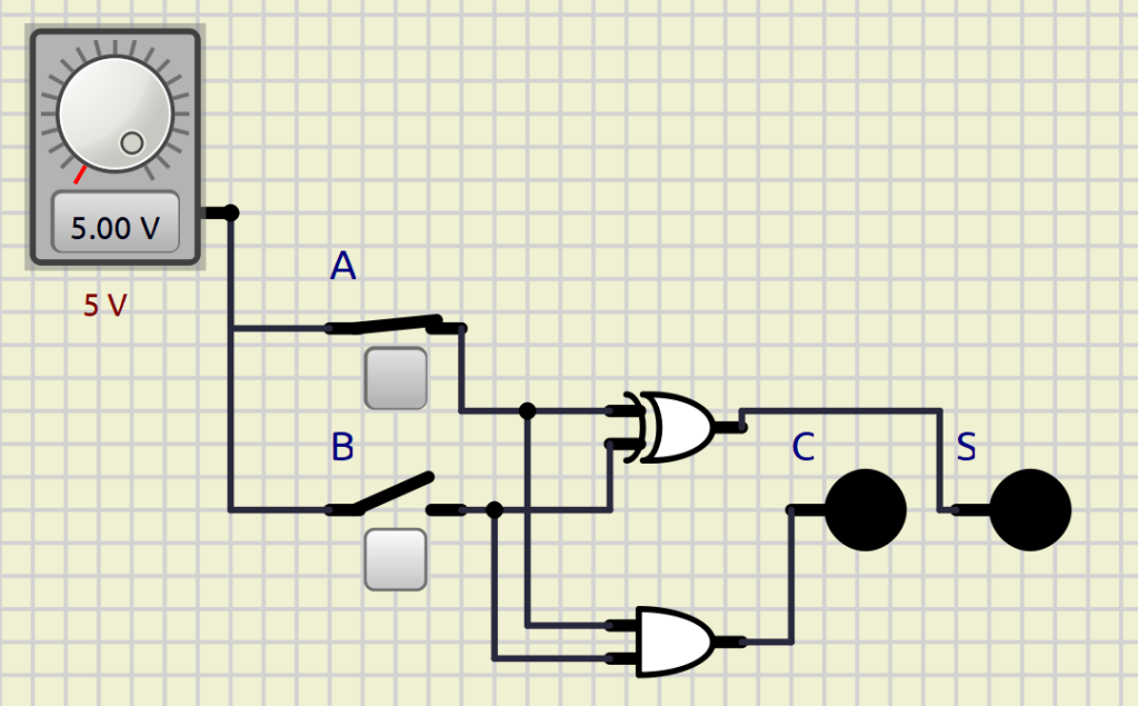 Позволяет вычислять сумму A+B, где A и B — это однобитные двоичные числа.