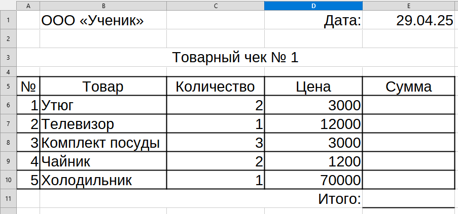 Сделайте товарный чек: