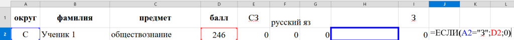 1. Напишем формулу, определяющую, относится ли ученик к Северо-Западному округу (СЗ)