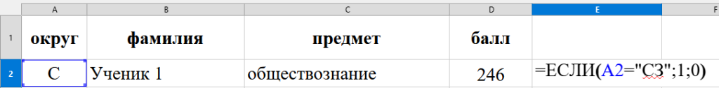 =ЕСЛИ(A2=»СЗ»;1;0) - если в ячейке A2 написано «СЗ», то результат = 1, иначе результат = 0
