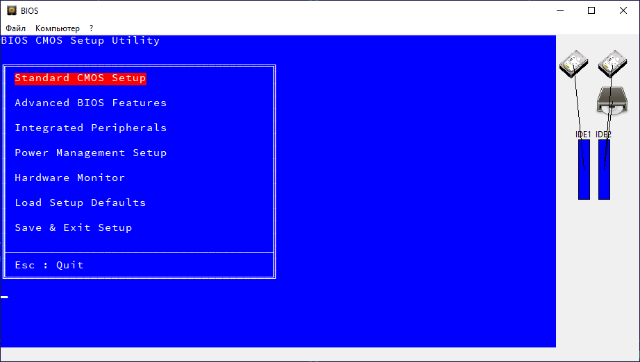 Эмулятор, позволяющий потренироваться настраивать BIOS компьютера. В нем можно изменять любые настройки и не опасаться, что Вы испортите настройки реальной BIOS.